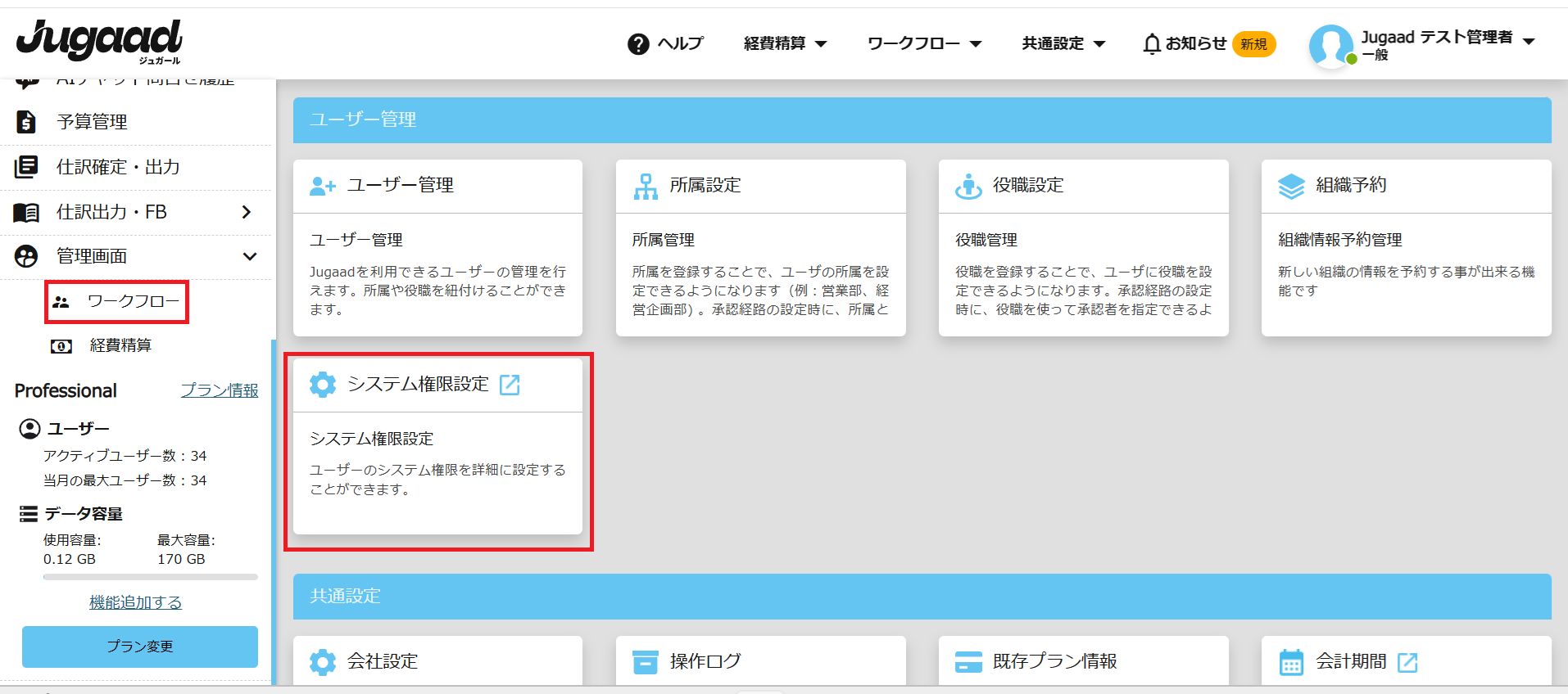 - システム権限(このページ): 「ユーザー管理」や「経費精算設定」など、管理メニューの操作に関する権限です。