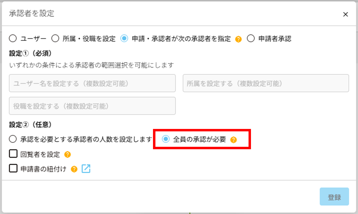 本機能の追加により、事前に人数を設定することなく、承認者全員の承認を必須とした設定が可能になります。