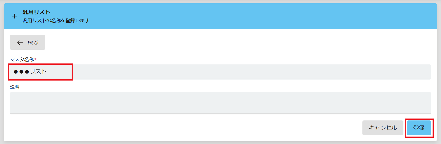 3. マスタ名称と説明(任意)を入力し、登録します。