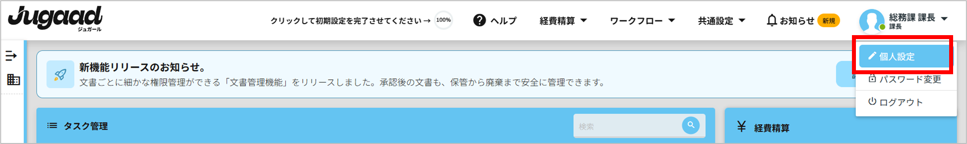 各ユーザーに代理承認者の設定を許可したくない場合は、こちらの方法で管理者が個別に対応します。