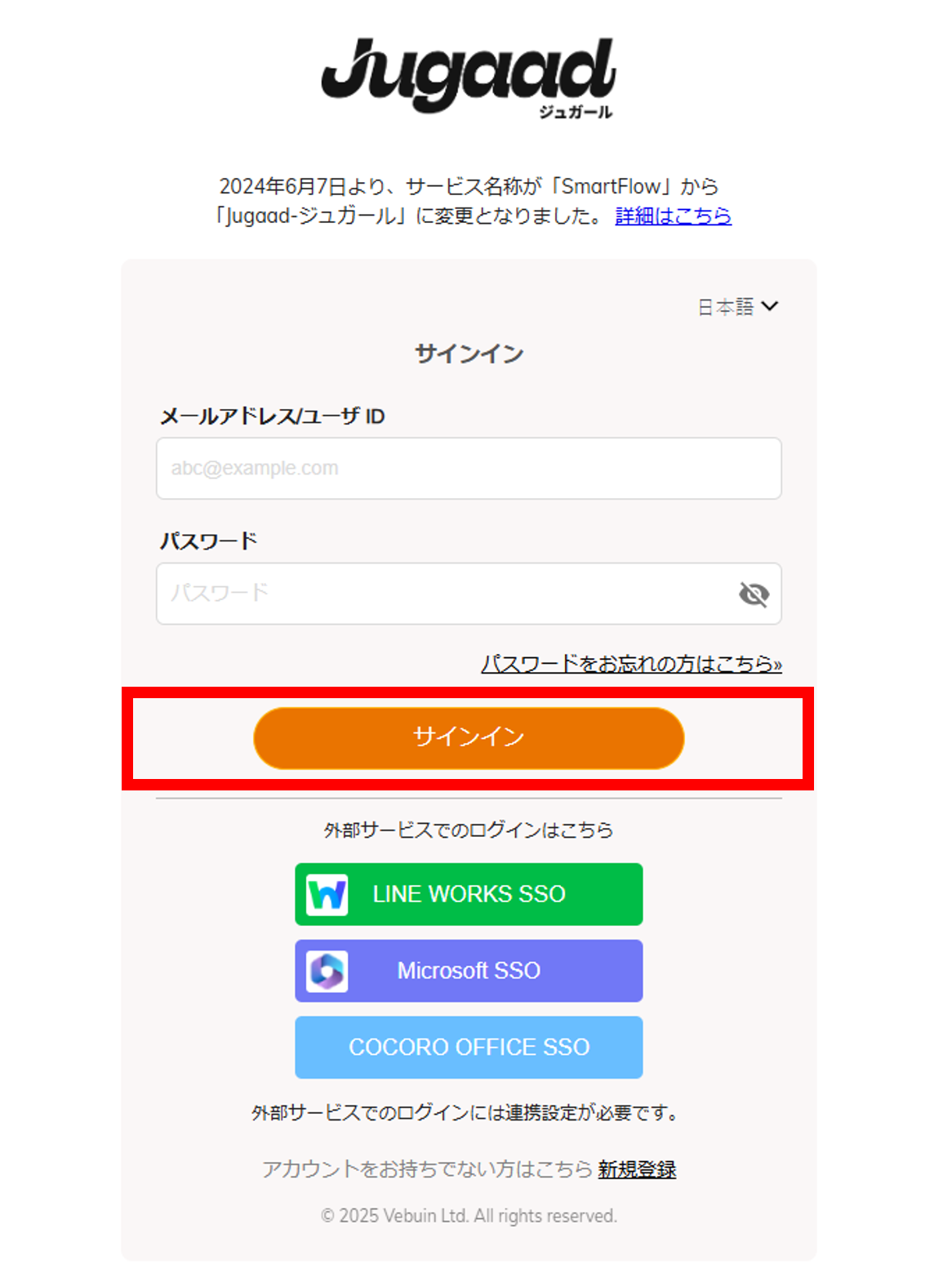 Jugaadにログインしていない場合は、ログインの対応を行ってください。