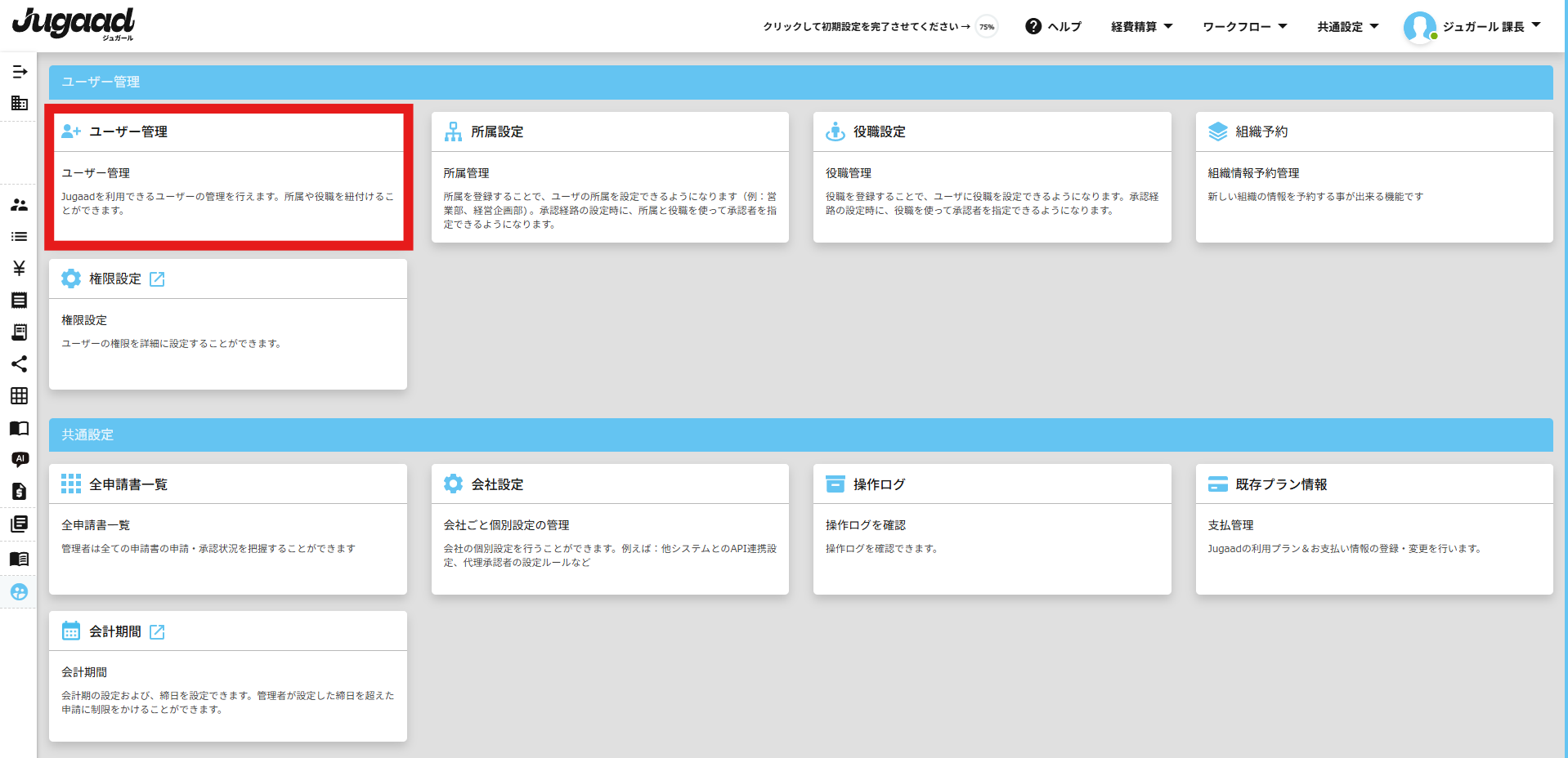 1. 管理画面から、ユーザー管理をクリックします