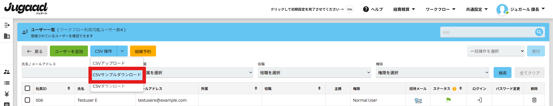 2. CSV操作からCSVサンプルダウンロードからCSVサンプルをダウンロードします