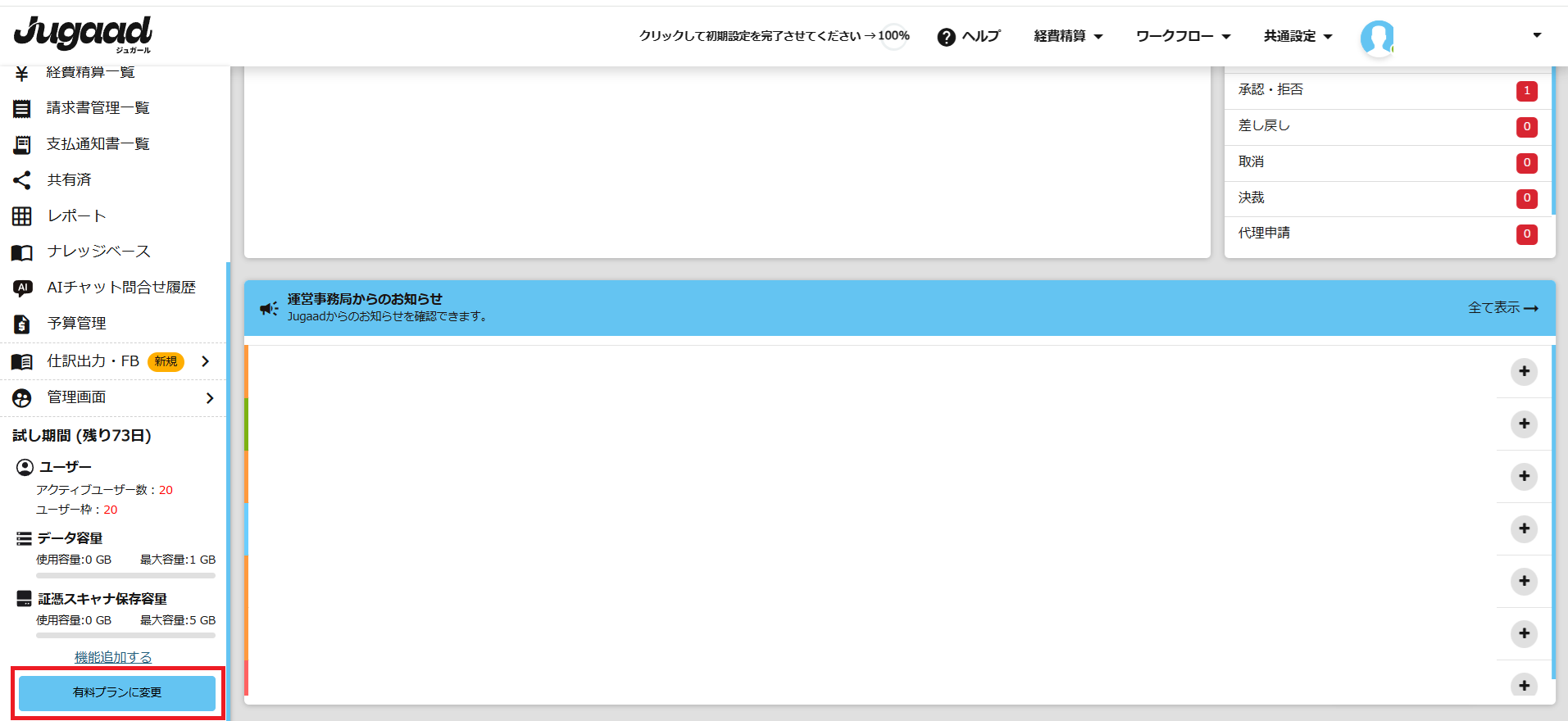 こちらではJugaadのプラン変更や契約内容の変更についてご案内いたします。