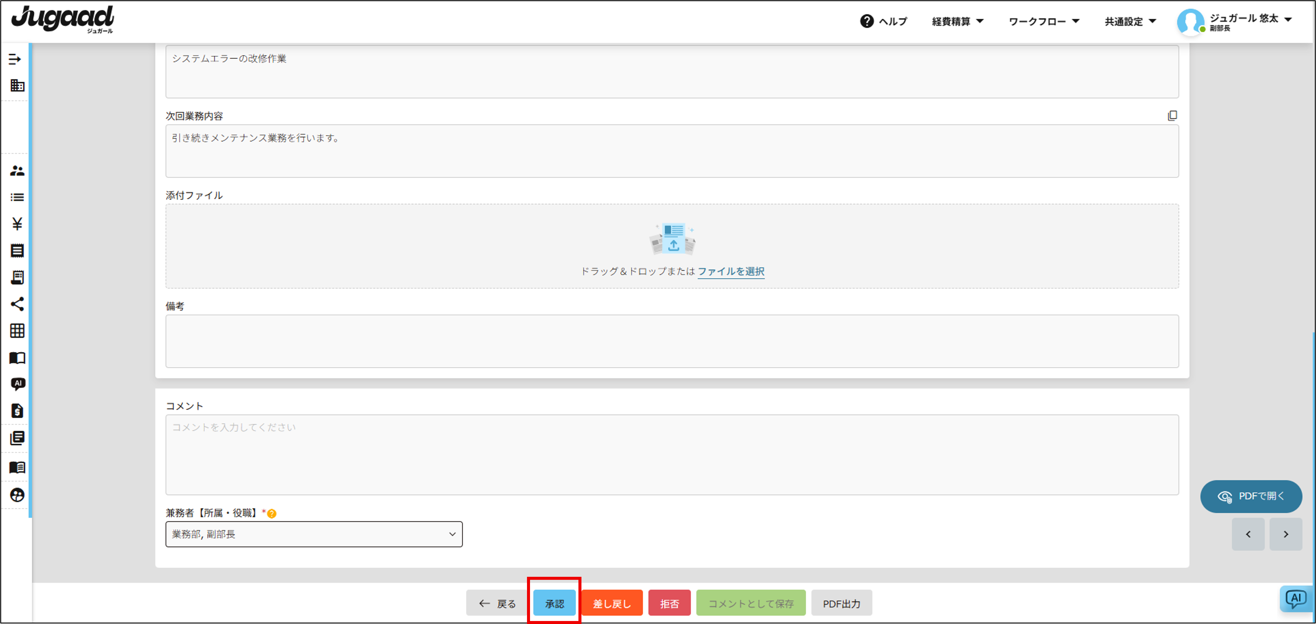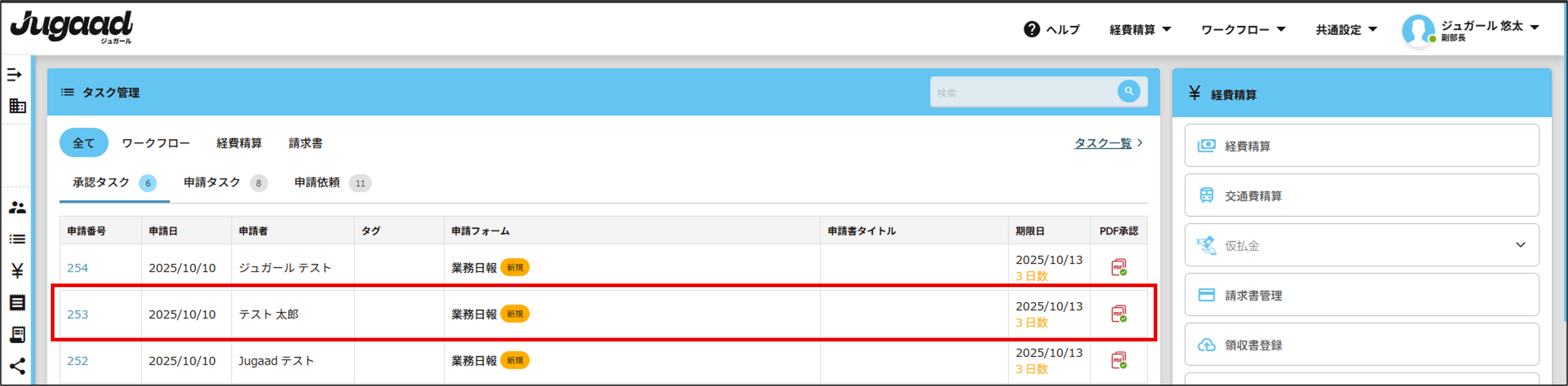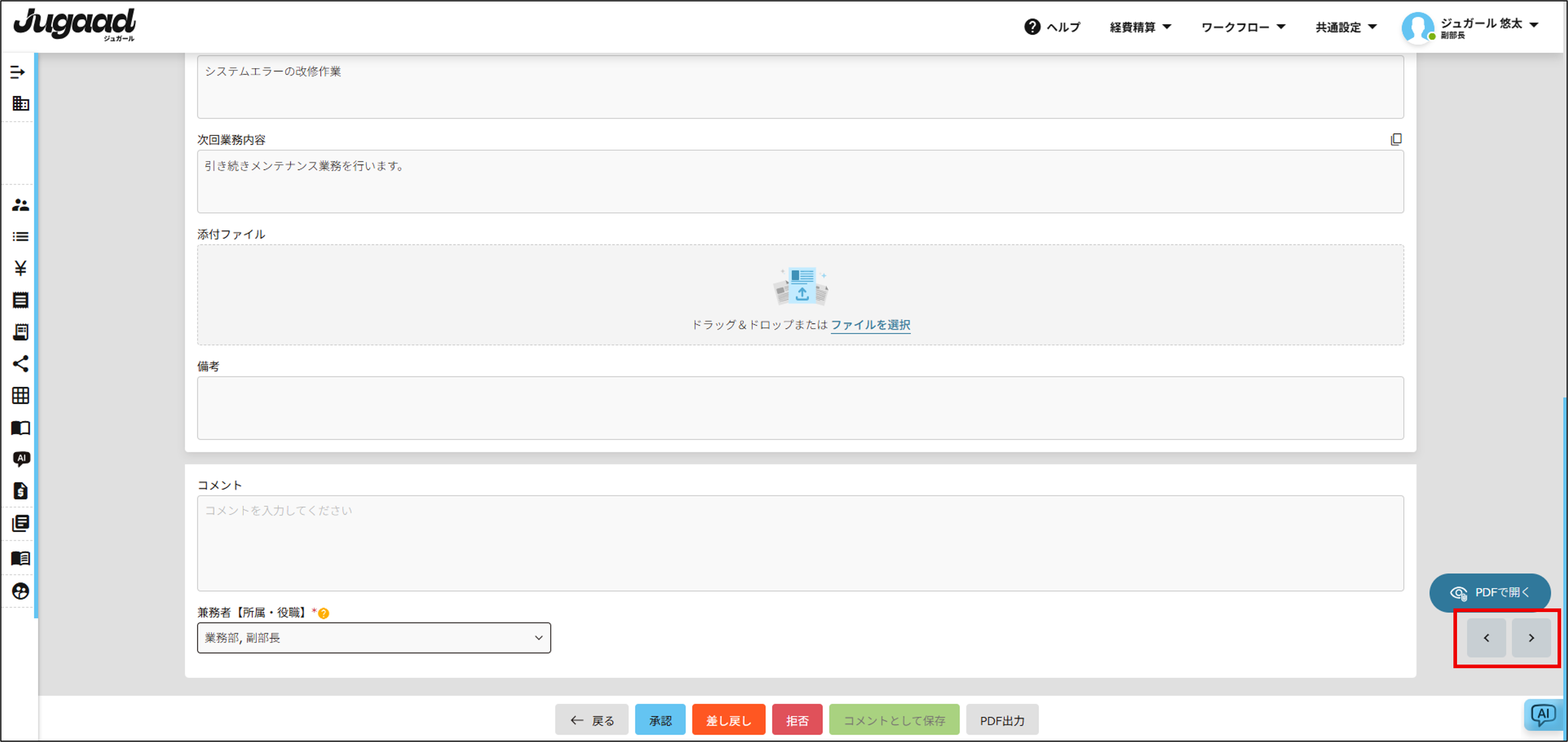 また、右下の矢印のボタンから他の承認タスクに移動することも可能です