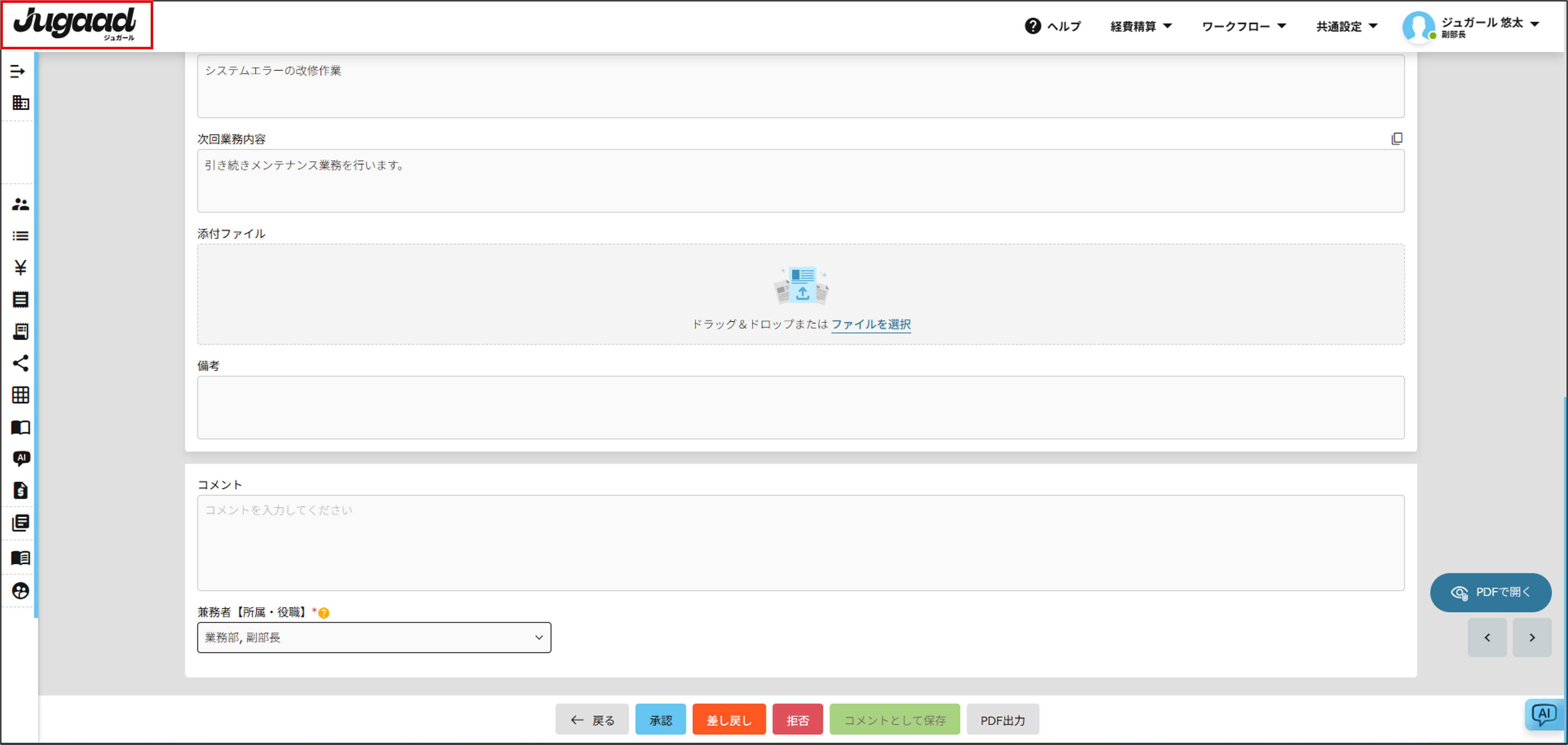 承認作業を終了する場合は、赤枠部分のロゴをクリックすることで、TOP画面に戻れます。