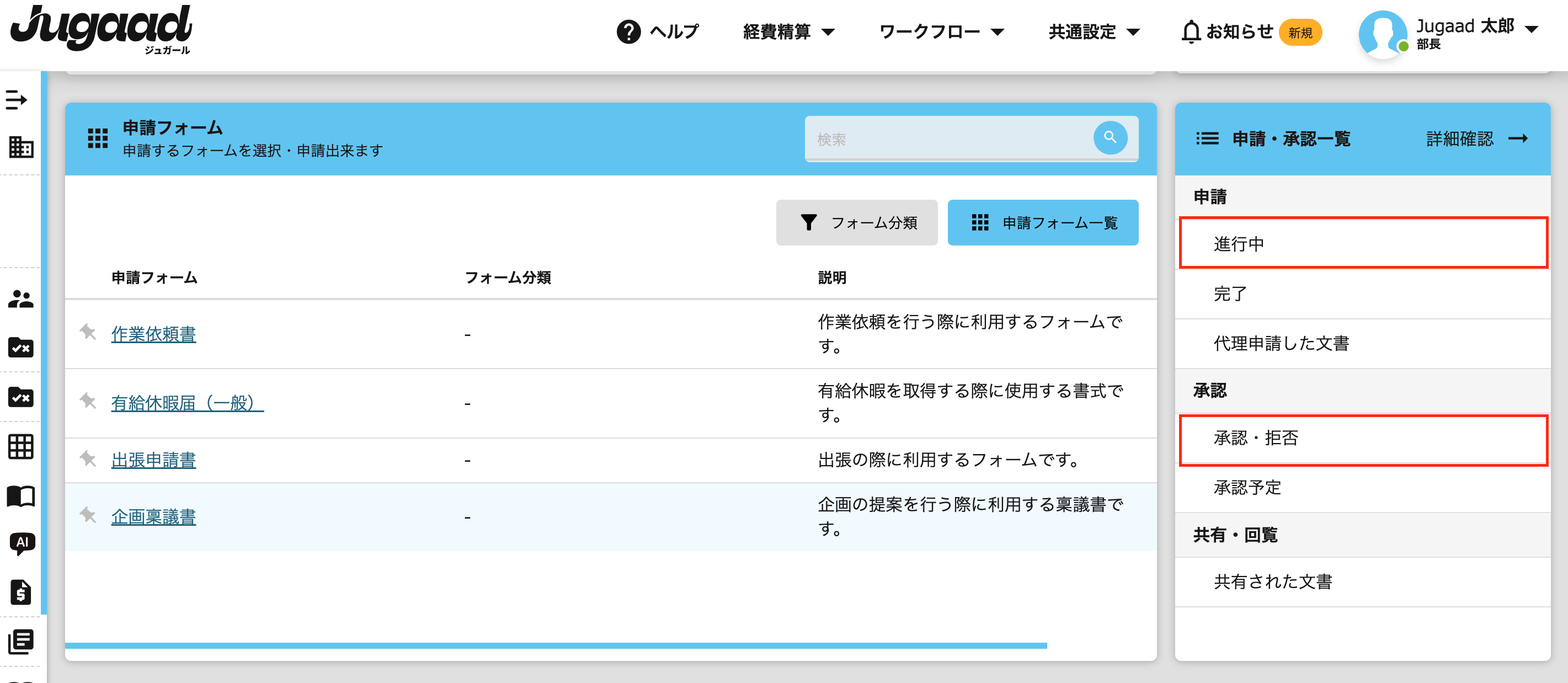 承認者の場合:承認・拒否
