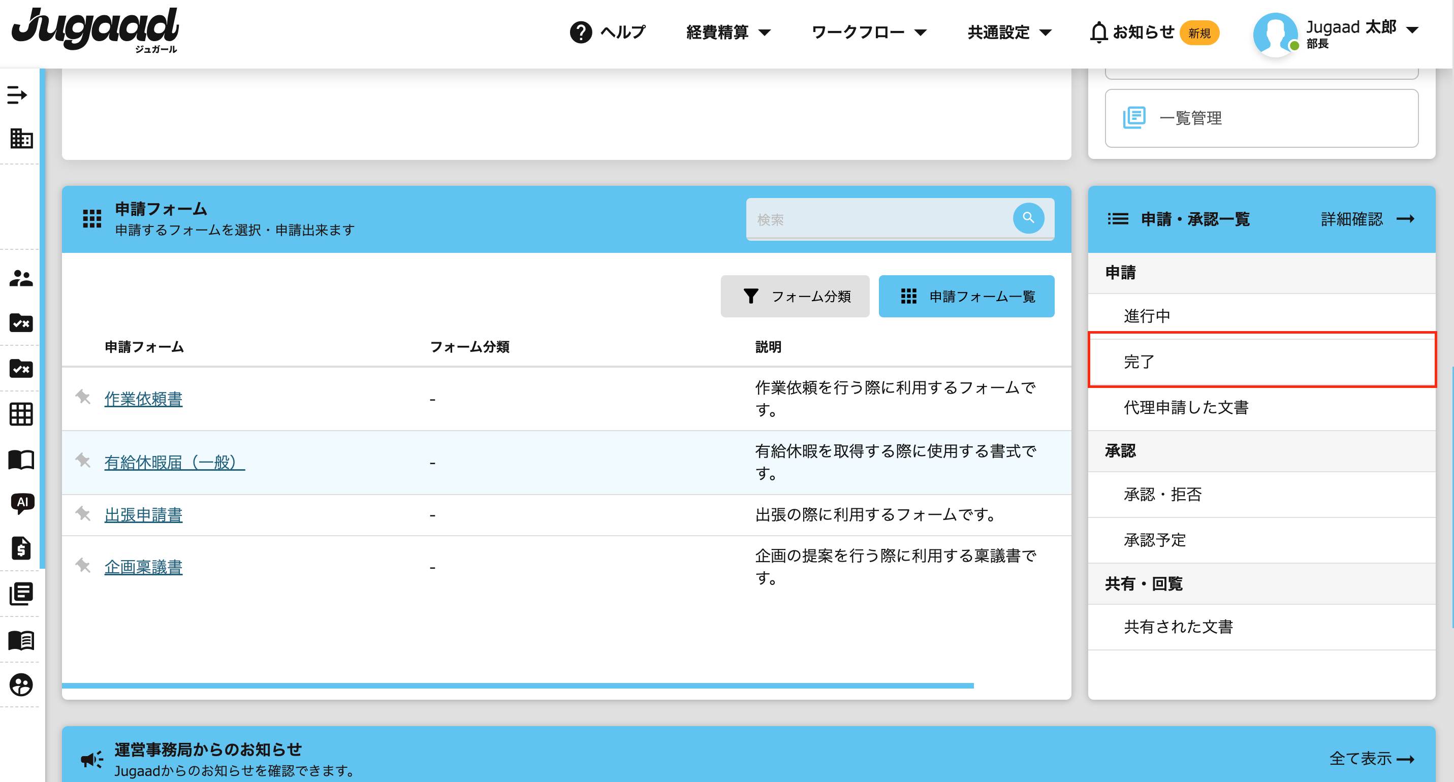 こちらでは自分の完了済の申請を利用して、再申請する方法をご紹介いたします。