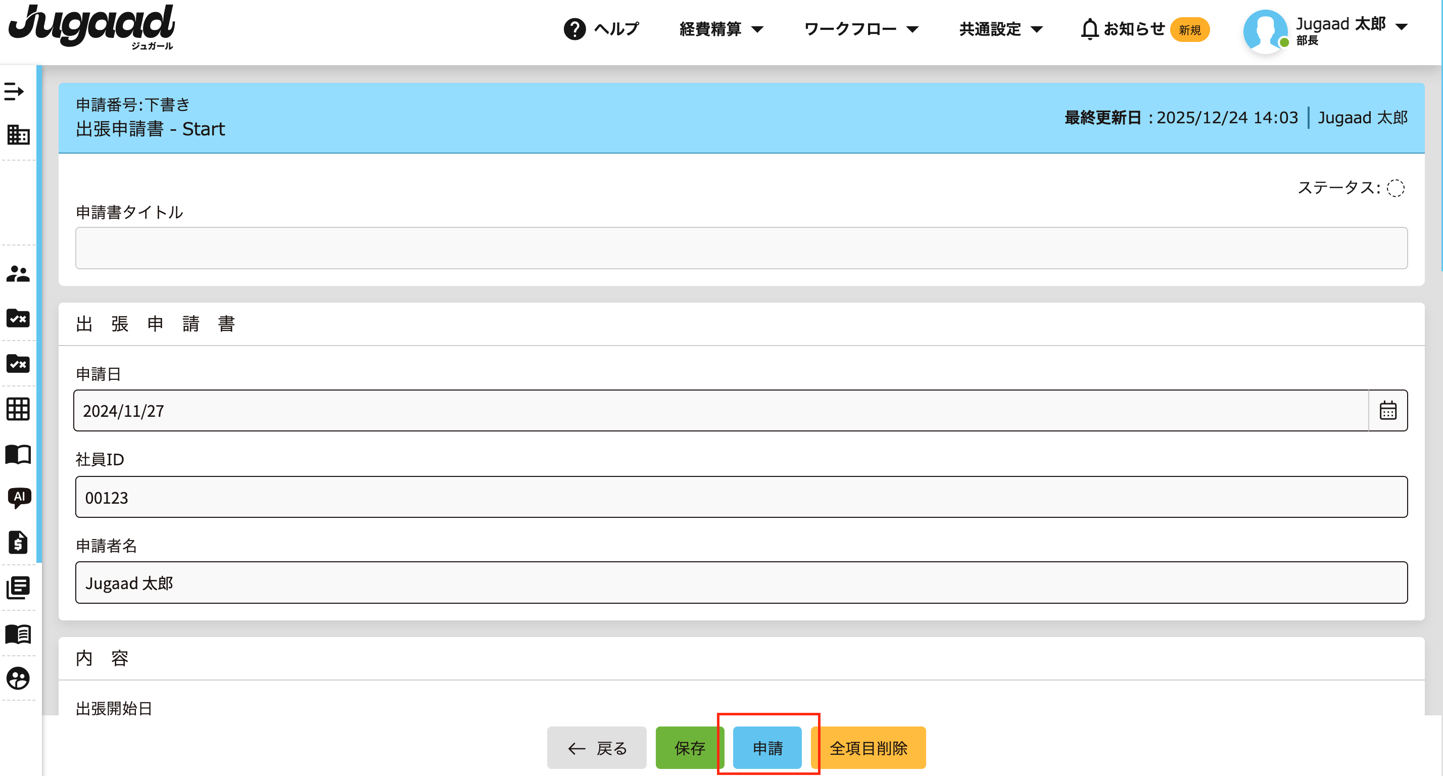3.過去に申請した内容で表示されていますので、内容を編集し、申請をします。